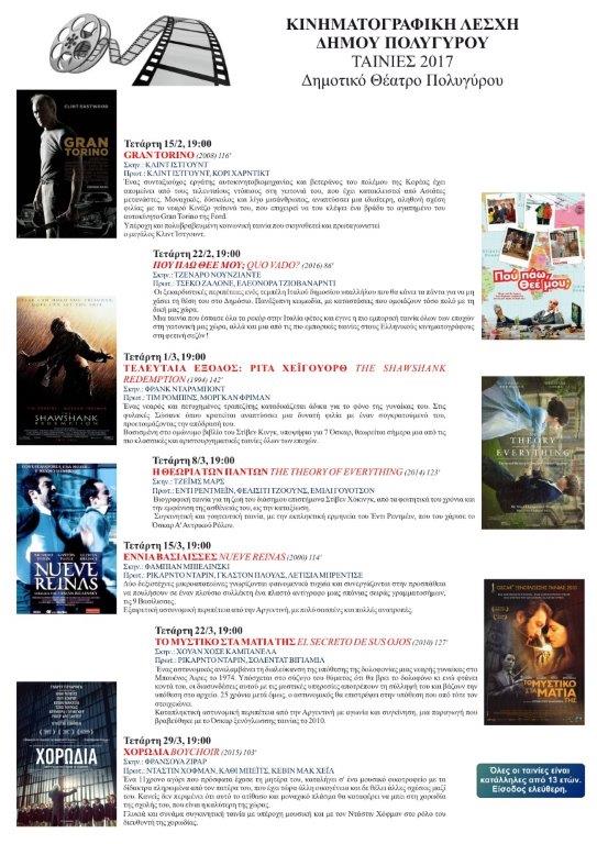 Ο Δήμος Πολυγύρου με πολύ φροντίδα και μεγάλη χαρά, εγκαινιάζει την Τετάρτη 15 Φεβρουαρίου 2017 την Κινηματογραφική του Λέσχη που ευελπιστεί να γίνει θεσμός στα καλλιτεχνικά δρώμενα της πόλης.